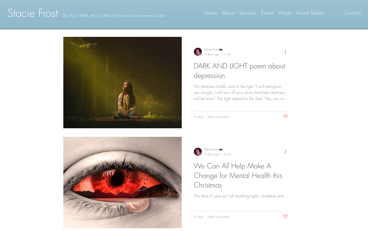 Stacie Frost is a clinical hypnotherapist and holistic practitioner who is using her SSHH Facebook page in the run up to to New Year to shine a light for all those suffering from symptoms of depression and anxiety. With a series of blogs running this week and regular posts through to 2019 she is raising awareness and sharing out a list of helplines and centres for the UK.
