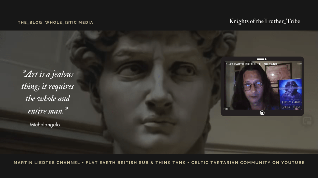 I’ve lost count of how many hours of videos I’ve watched presented by Martin across his four channels since last year. A recent ‘Flatterday’ Live on a Saturday night was five hours long on it’s own. I’m still learning something new or find a missing puzzle piece in every vlog. His life experience as a stone mason’s assistant and in the Merchant Navy has gifted him with direct experience of many of the topics he researches. Down to Earth, kind and no fancy airs and graces, belies his extensive knowledge. He’s an intuitive detective and expert decoder of both the physical and esoteric nature of reality. He also swears, cusses and takes the piss when blatant lies and injustice are apparent. And rightly so.
